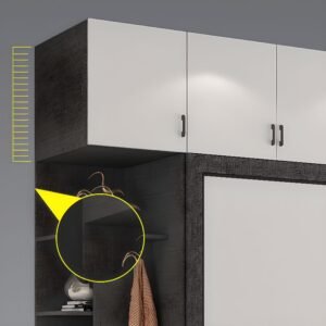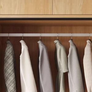 - Upgrade your wardrobe with this smart armoire. Enjoy organized interior shelves and a handy hanging rod, all behind a smooth soft-close door. Perfect for your daily rhythm.
