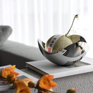 Creative style metal stainless steel light luxury fruit plate with lid, spherical shape, storage pocket, coffee table, dining table, snack plate, fruit basket, home decoration item