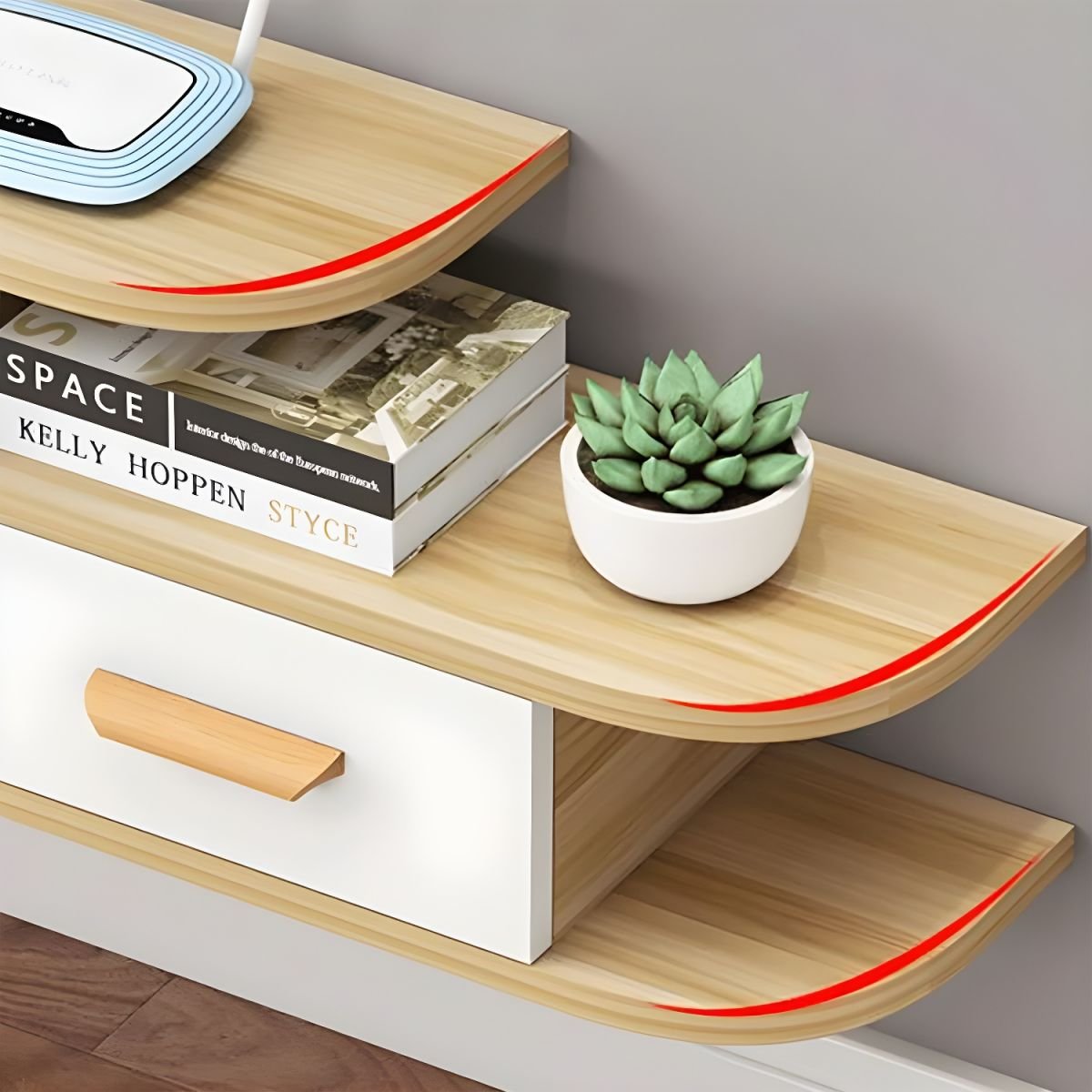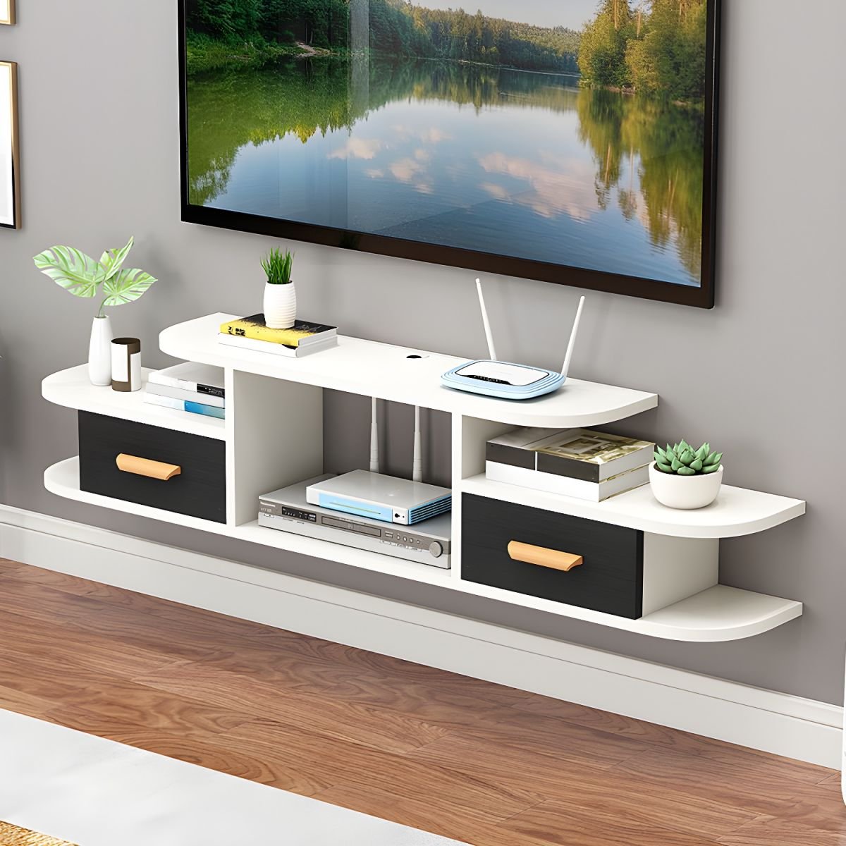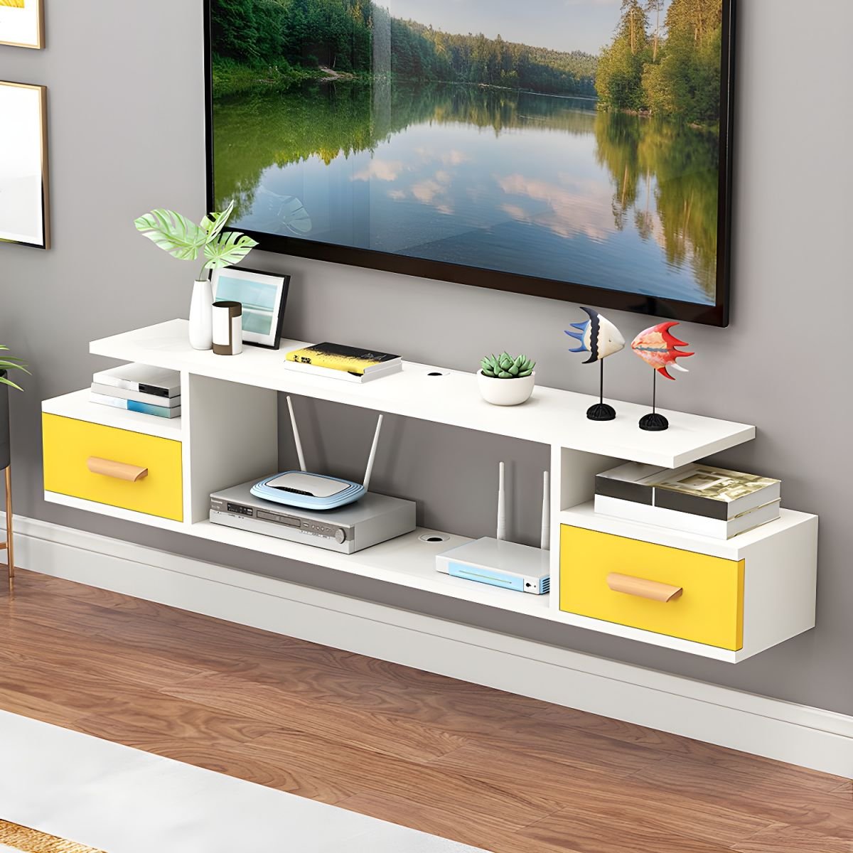 Contemporary Floating Media Console White Faux Wood Stand Console with Drawers