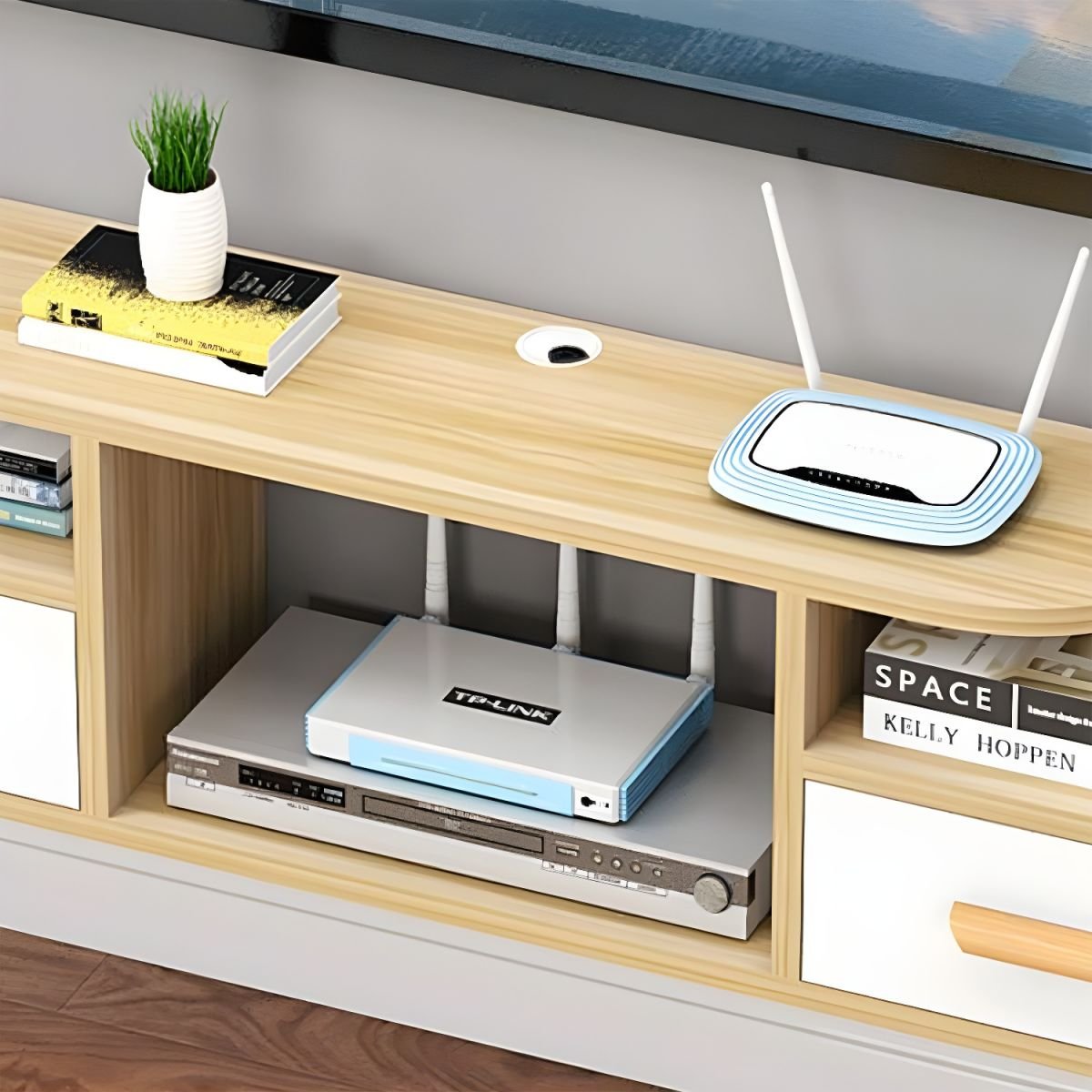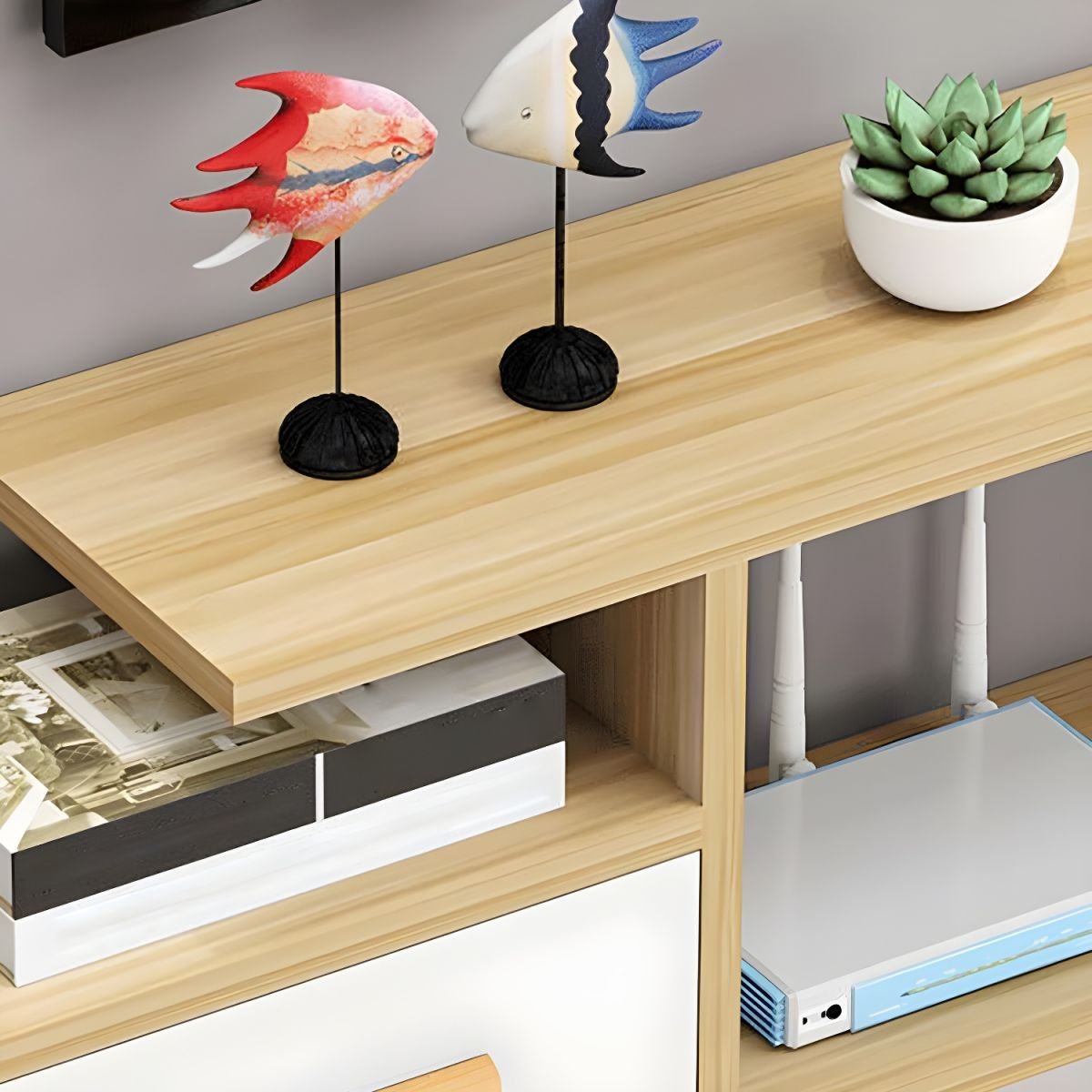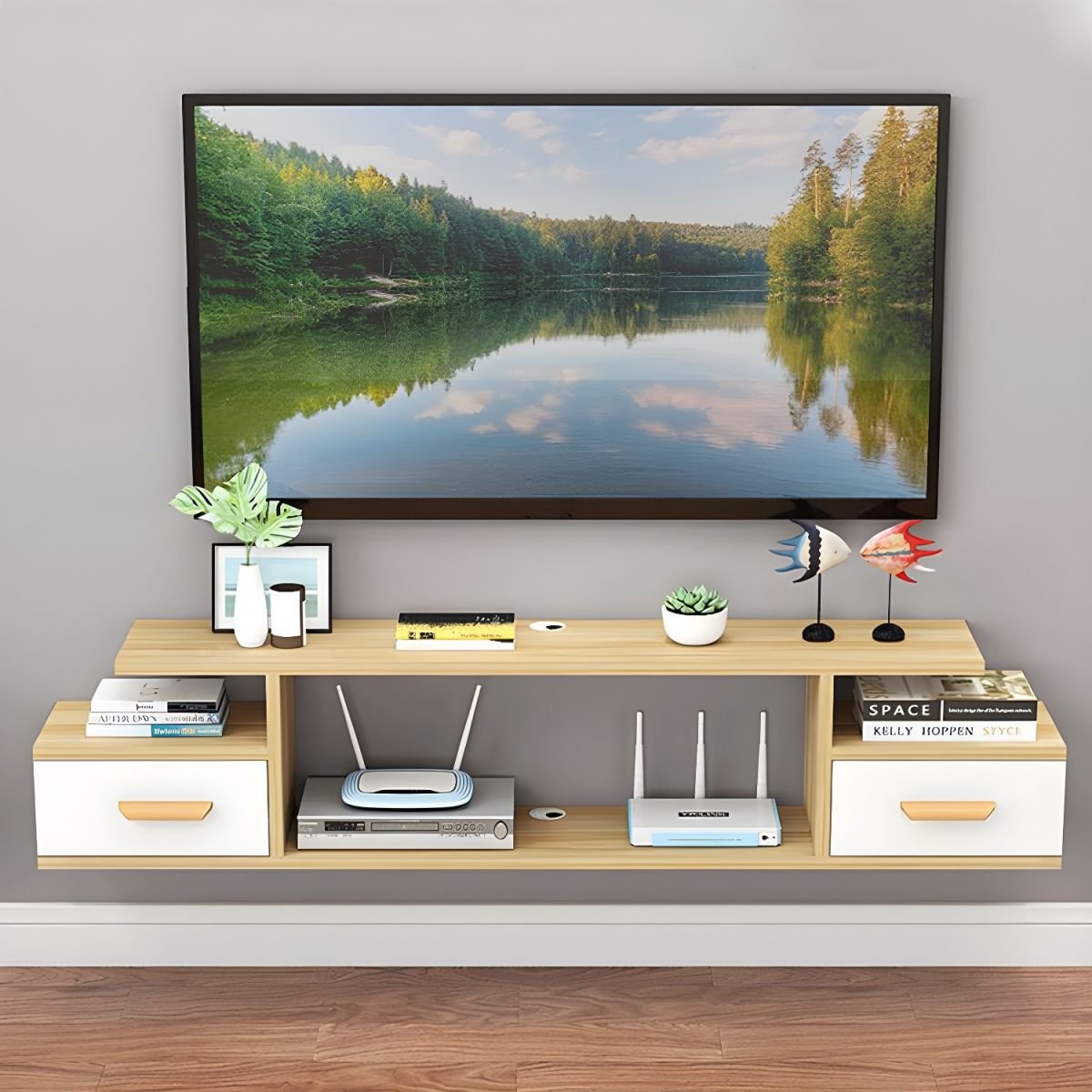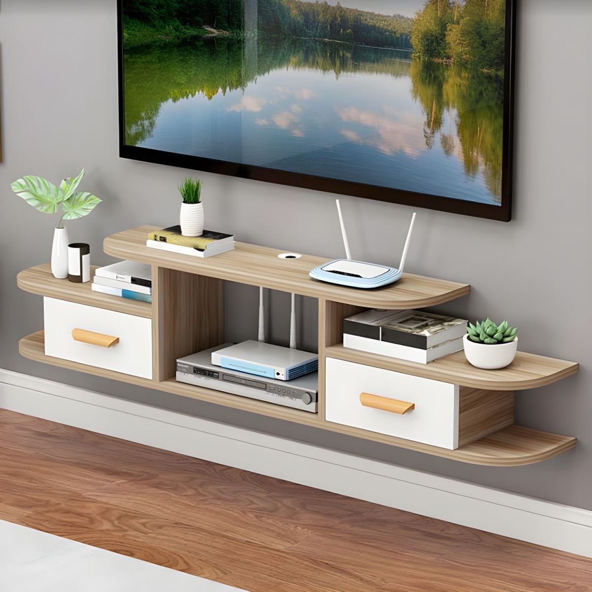 Contemporary Floating Media Console White Faux Wood Stand Console with Drawers