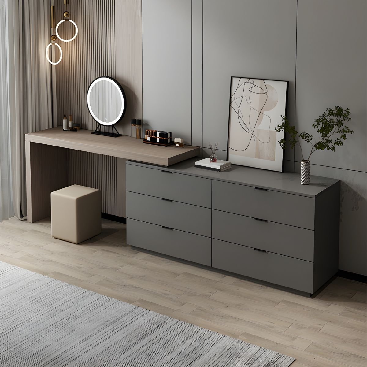 Grey Simple Lumber Large Vanity Set with 6 Drawers, No Suspension, and Table top Storage