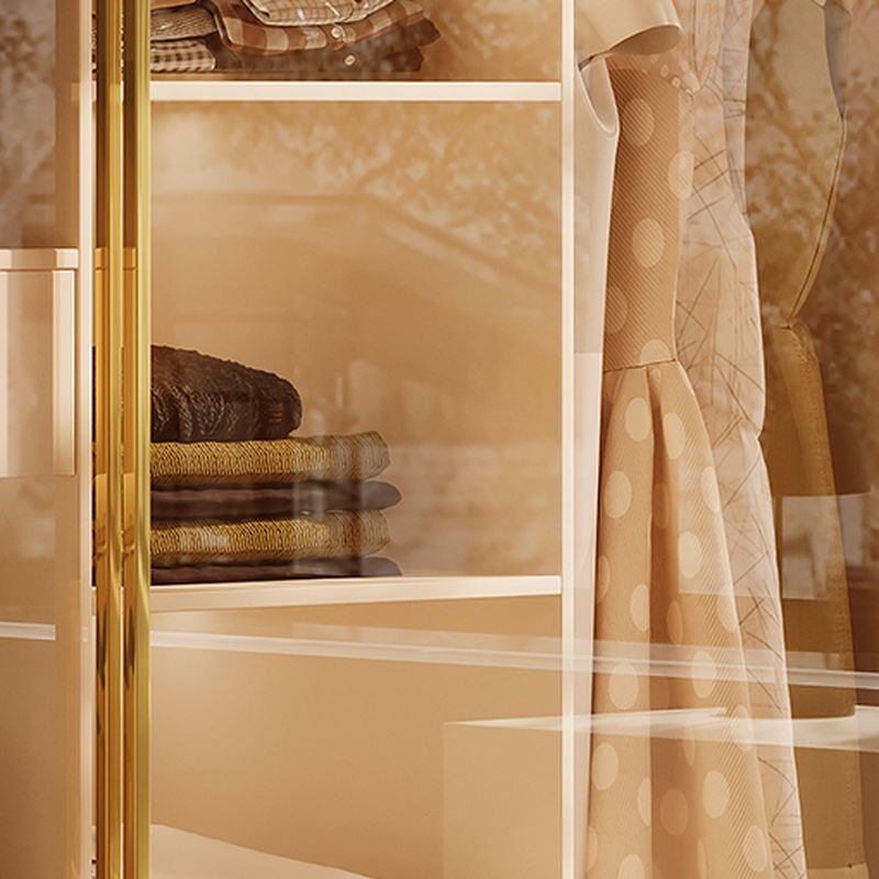 Simple Freestanding Cream Manufactured Wood Cabinet Armoire with Interior Shelves, Clothing Rod & Soft Close Drawer