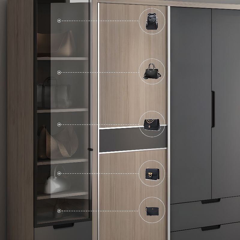 Storm Gray Manufactured Wood Wardrobe With 6 Glass Doors Independent Armoire Cabinet with Interior Shelves and Clothing Rod
